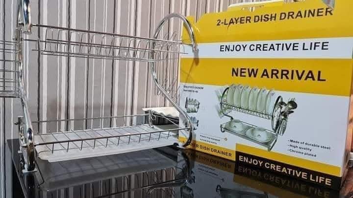 Keep your kitchen neat and organized with this practical and stylish 2 layer dish drainer rack. Designed for modern kitchens, it helps you dry and store plates, bowls, glass, and utensils efficiently while saving valuable counter space.