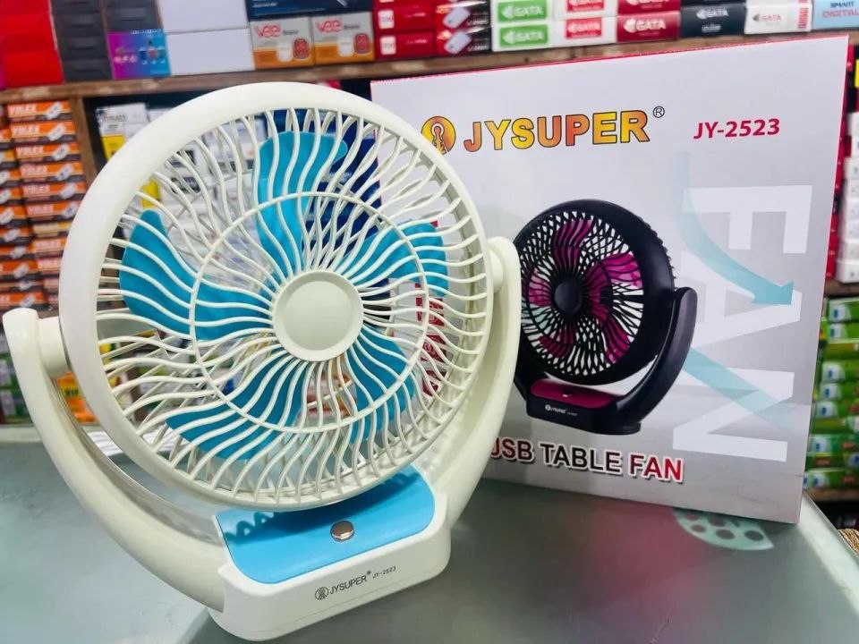 Stay cool anywhere, anytime. The JY Super 2523 Rechargeable Table Fan is built for convenience, portability, and reliable performance—perfect for home, office, or travel use.