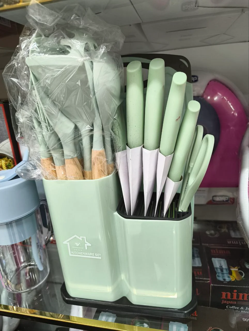 এই সেটটিতে আছে রান্না ঘরের প্রতিটি প্রয়োজনীয় সরঞ্জাম — ছুরি, স্প্যাচুলা, ল্যাডেল, টং, হুইস্ক থেকে শুরু করে সিলিকন বেসড রান্নার টুল পর্যন্ত।