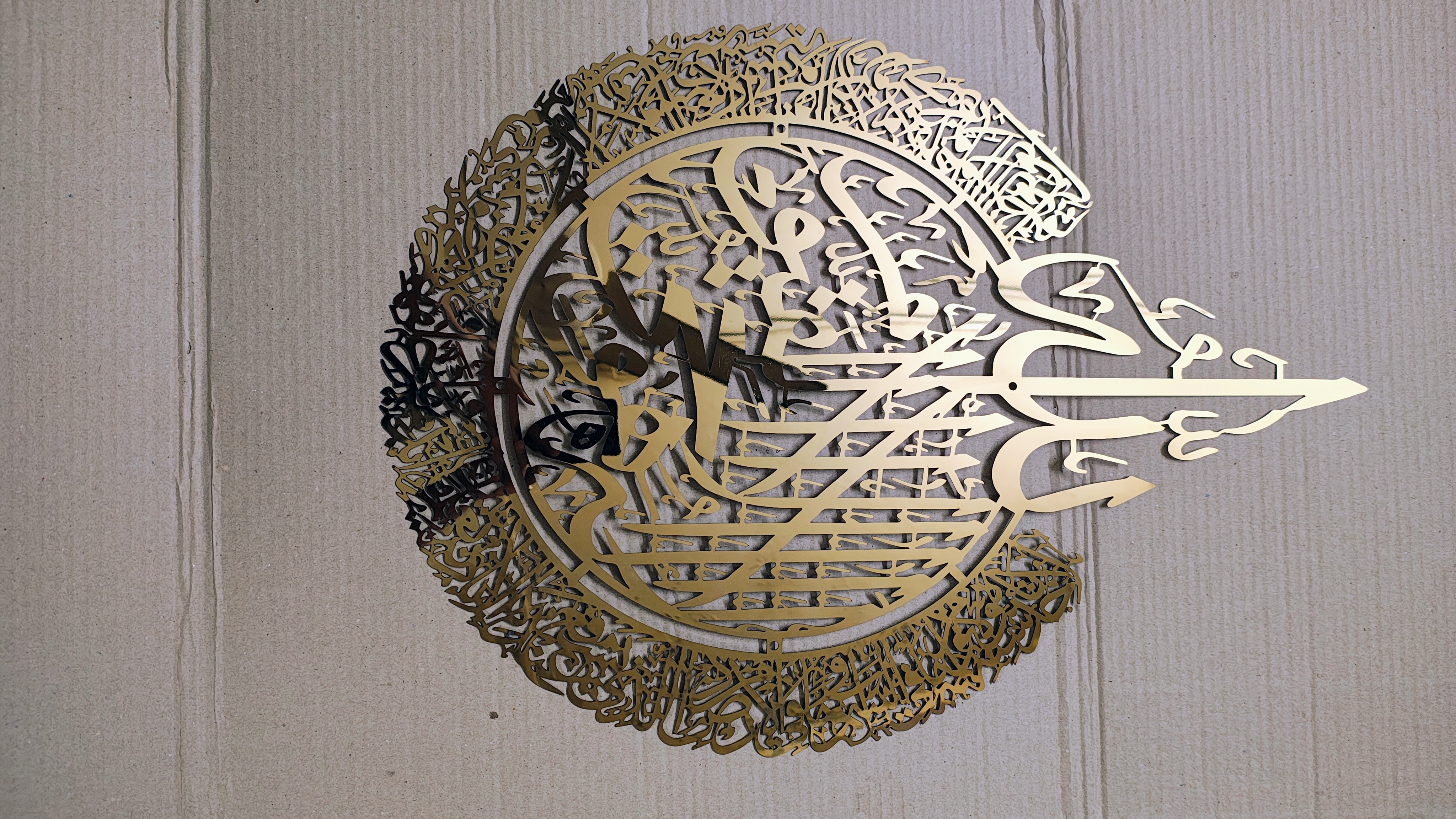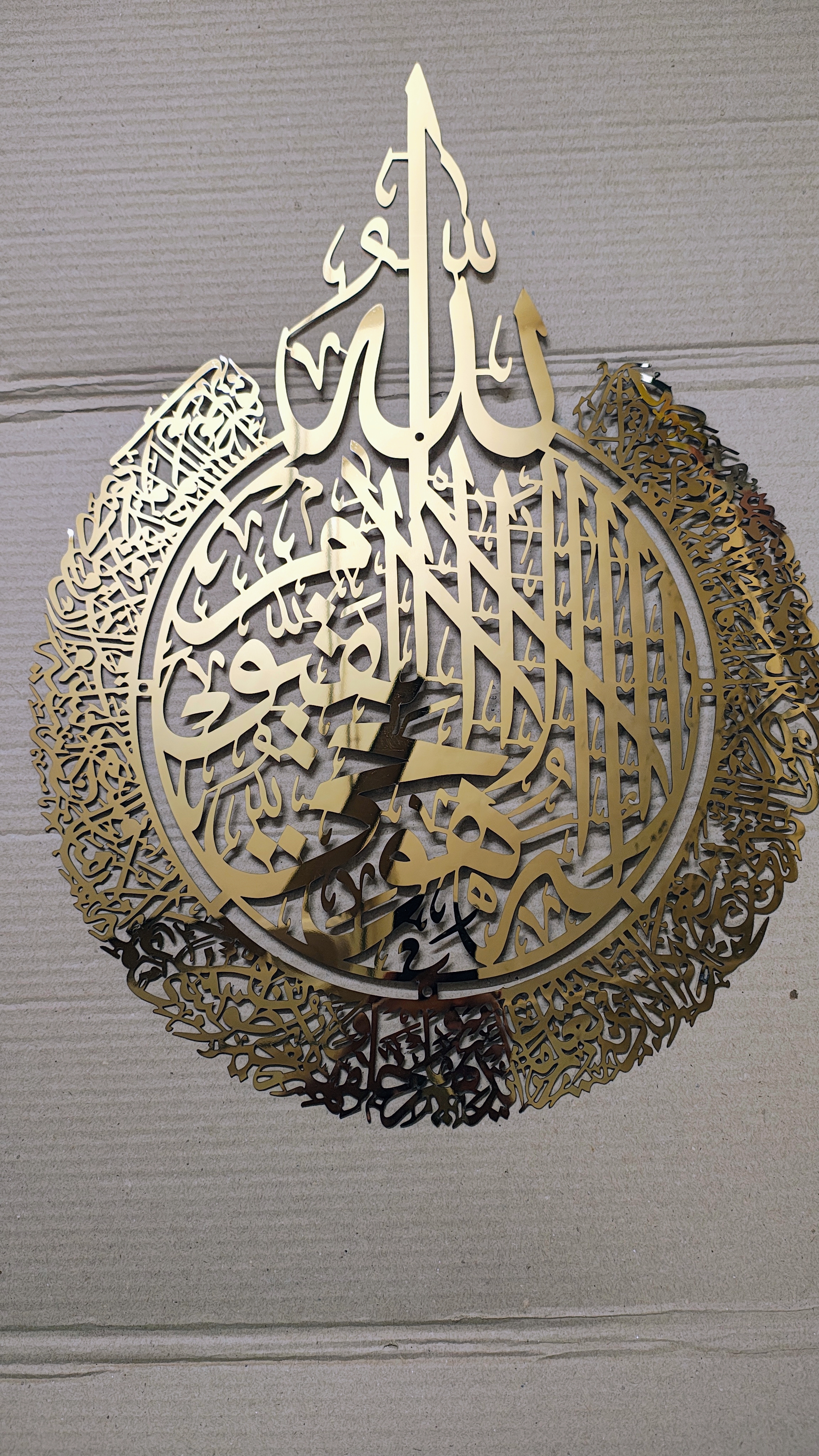 Ayatul Kursi Golden Wall Art – Shiny Stainless Steel | 21×15 Inch Islamic Home Decor
