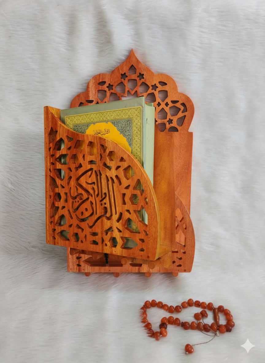 মজবুত কাঠের নির্মাণ আর সূক্ষ্ম ইসলামিক ক্যালিগ্রাফি পুরো শেলফটিকে একদম রুচিশীল করে তোলে। যেকোনো ঘরের দেয়ালে ঝুলিয়ে দিলেই একটা শান্তিময়, নান্দনিক পরিবেশ তৈরি হয়। যারা ইসলামিক হোম ডেকর খুঁজছেন, তাদের জন্য এটা নিখুঁত পছন্দ।